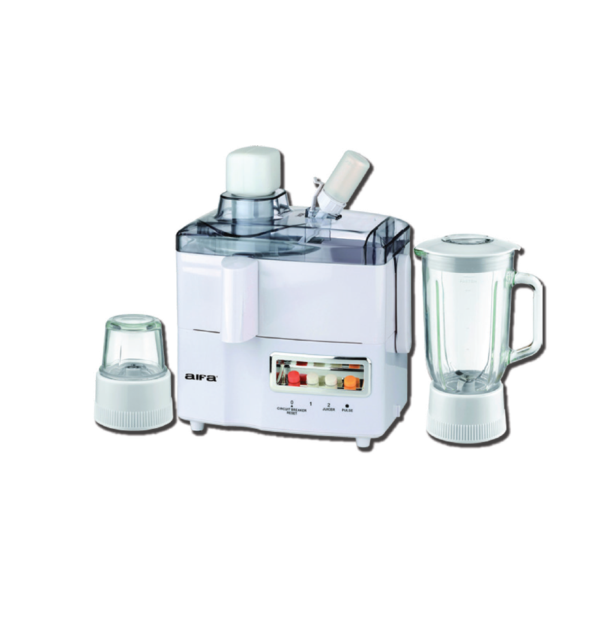 A versatile kitchen companion. Its stainless steel spinner with an S-shaped cutter ensures optimal juice extraction by firmly holding fruits in place. The fine filter mesh separates juice from pulp, delivering a refreshing drink every time. With functions for juicing, blending, and grinding, this appliance offers versatility in the kitchen. The detachable container base makes cleaning a breeze, and the heavy-duty copper motor ensures reliable performance.