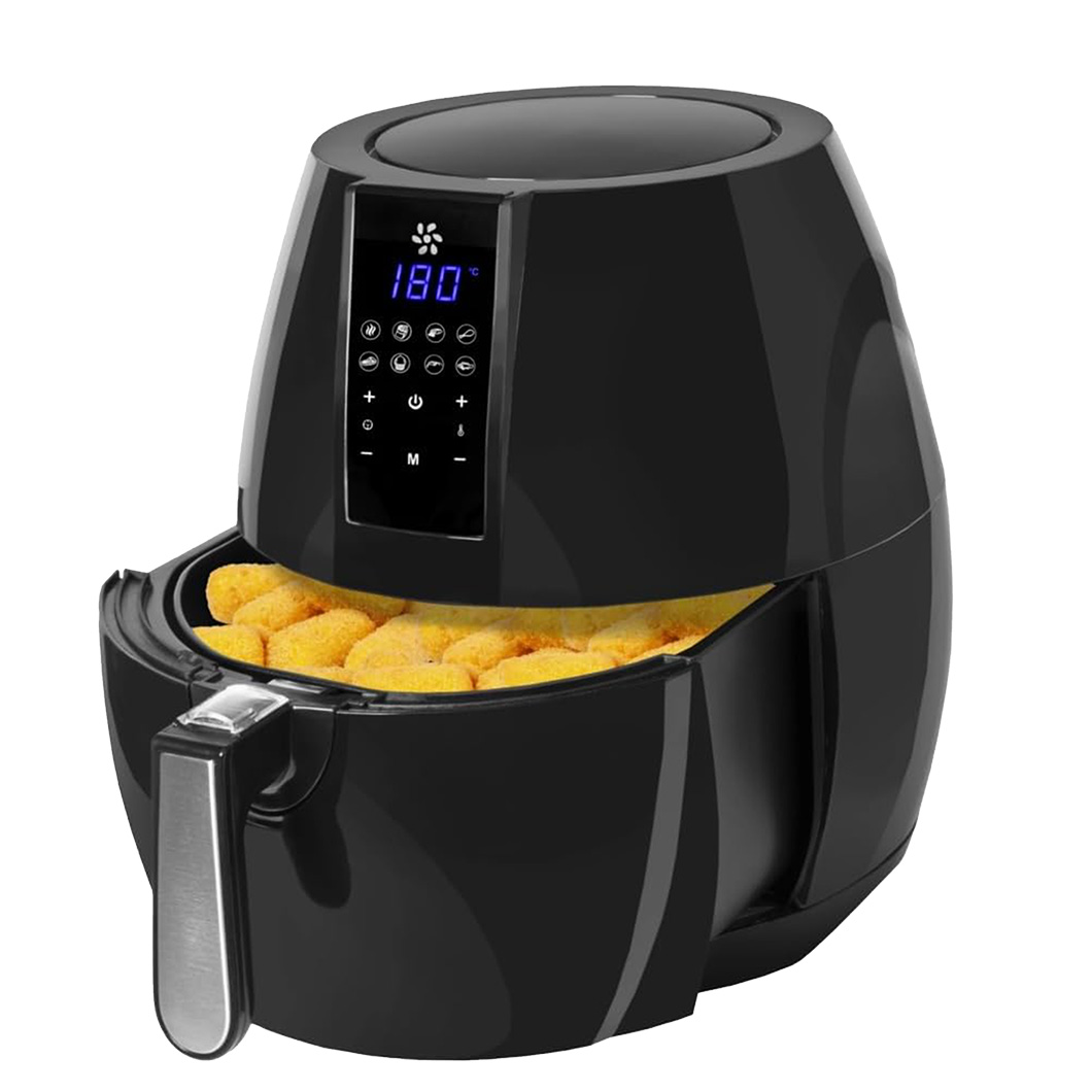 It employs high-speed air circulation technology to fry delicious food with rapid air circulation, ensuring faster cooking and energy efficiency. With up to 80% less fat, this air fryer promotes healthier cooking. The LCD display with touch screen allows you to easily adjust time and temperature controls. The non-stick detachable drawer and food basket make cleaning a breeze.