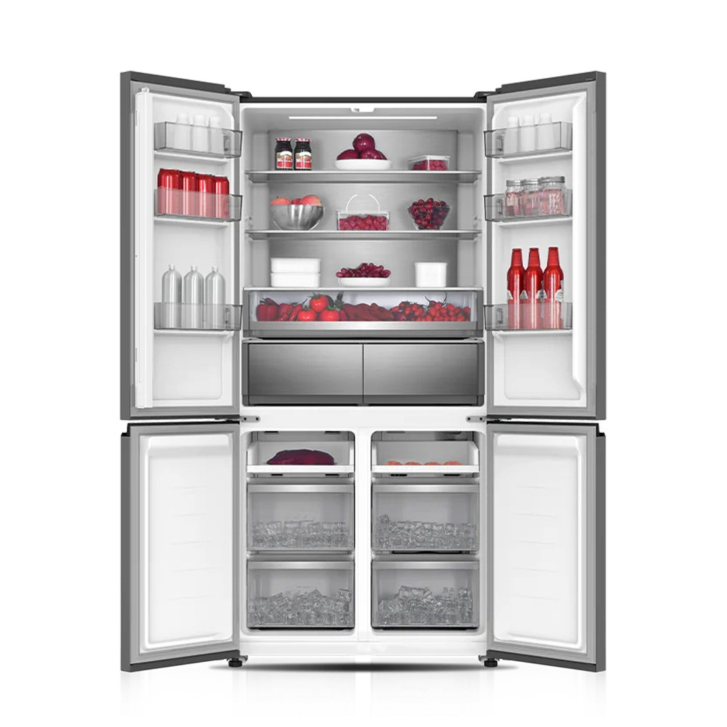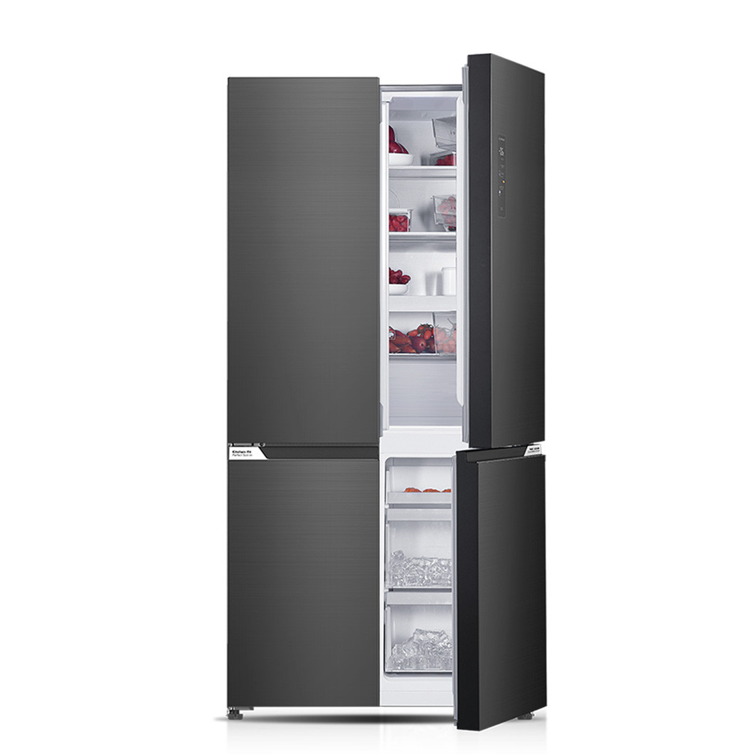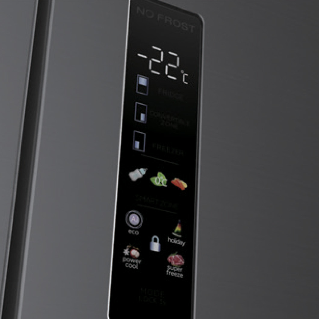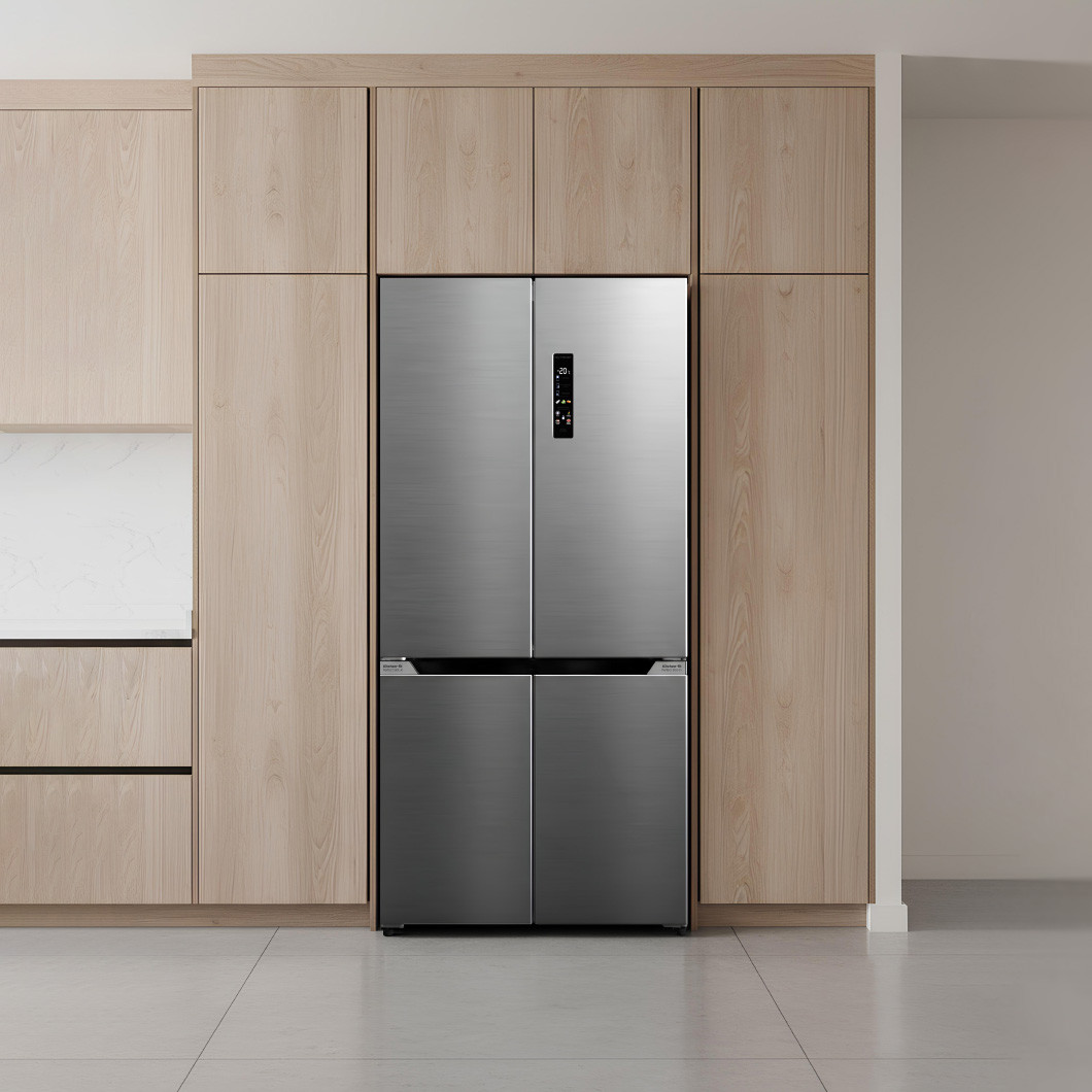It's designed to fit seamlessly into your cabinetry with no gaps, thanks to cool side walls and bottom ventilation. Special hinges open 105 degrees for easy access to items at the back. No-Skin Condenser technology reduces heat load and allows slimmer insulation, maximising the 505L capacity. Multi-zone AI sensors monitor temperatures and humidity across compartments, while LED touch controls let you adjust each section independently. Powered by an energy-efficient inverter compressor with No Frost technology, this fridge delivers smart, customised cooling in a sleek, built-in design.