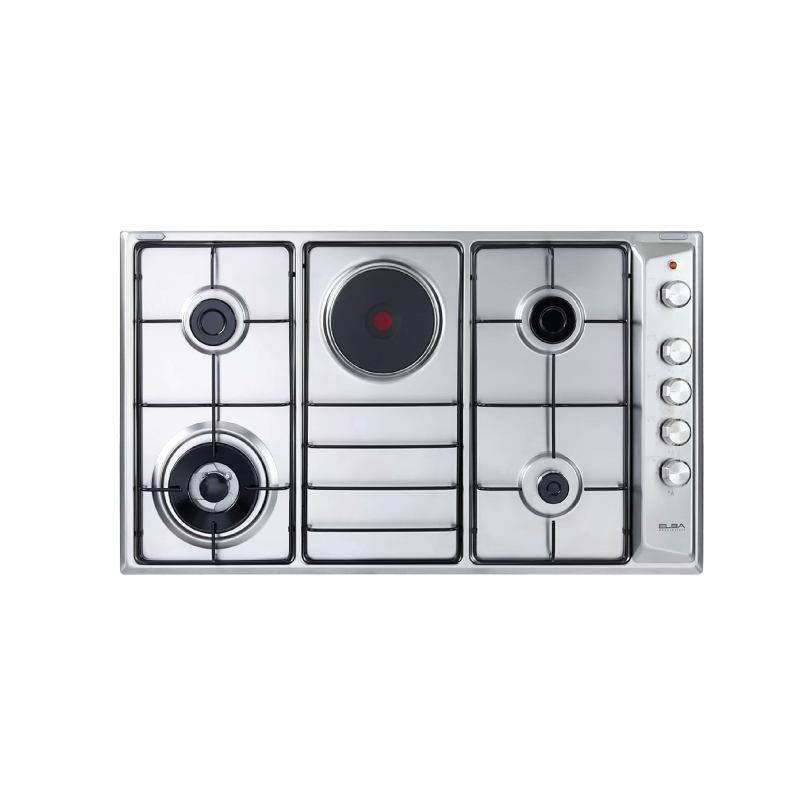 Experience culinary versatility at its finest with the ELBA EN90 410XD 90cm Built-in Gas & Electric Hob, a sophisticated 90cm built-in hob that seamlessly combines the precision of gas cooking with the convenience of electric elements, elevating your kitchen with exceptional cooking capabilities.
