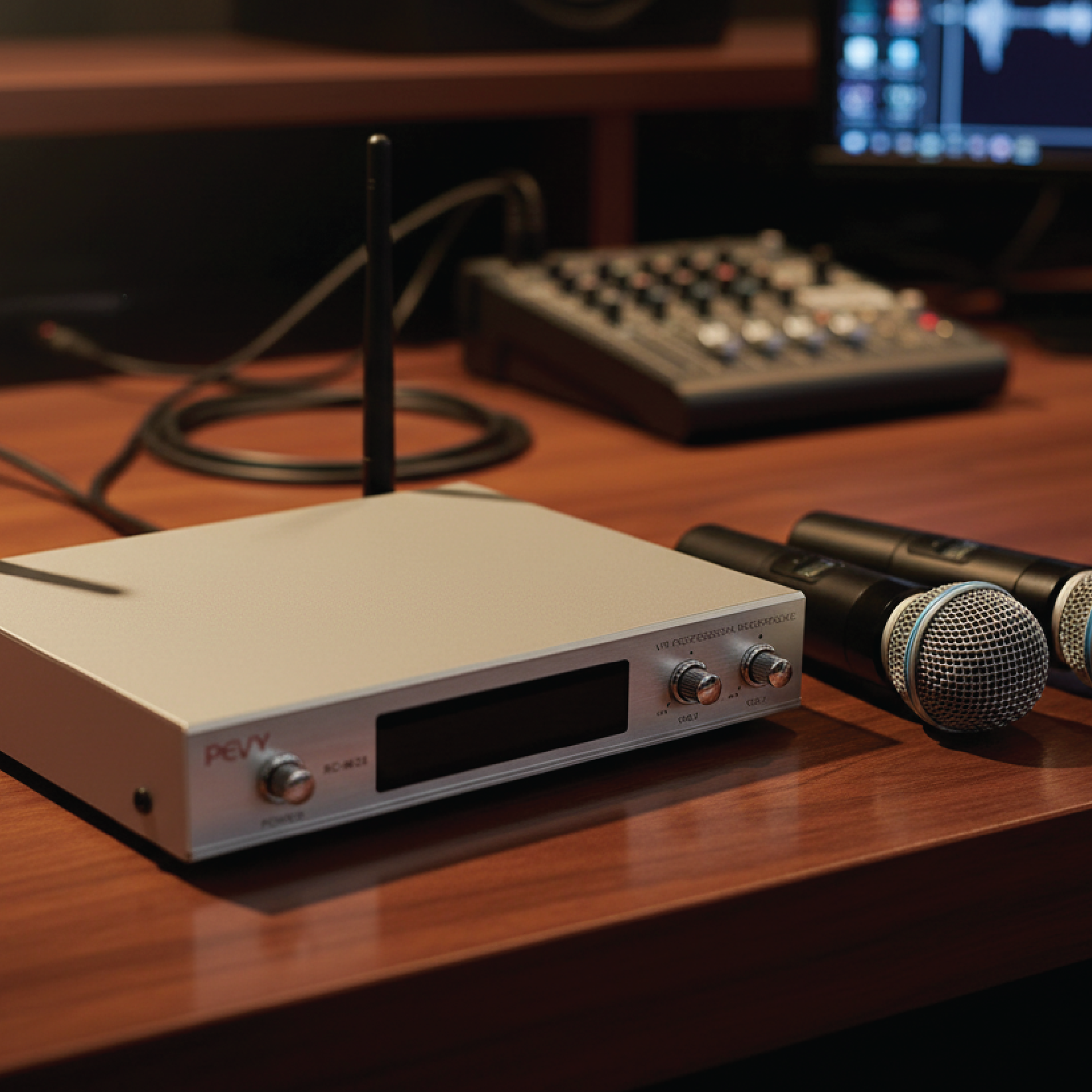 A versatile audio solution with a 2-channel receiver and two wireless handheld microphones. Featuring individual volume controls on each channel, this system provides precise audio adjustments. The 1/4" audio unbalanced output ensures seamless connectivity, with a range extending up to 300 feet (100 meters). Both the handheld and transmitter operate on AA batteries, offering an impressive 12 hours of battery life.