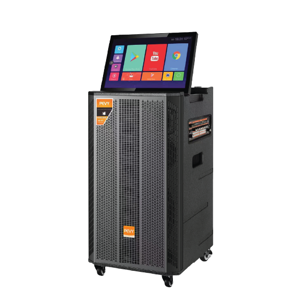 A dynamic entertainment solution for on-the-go karaoke enthusiasts. Boasting a powerful 1000W - 4500W output, this trolley speaker delivers super bass stereo sound through one 15" woofer. The 23" full HD screen has been upgraded and is connected to a 270-degree rotating disk with a hydraulic support rod, while the included two UHF wireless microphones provide hassle-free vocal performances. With an upgraded 14,000mAh battery capacity, the PEVY OTV-23A16-0 ensures lasting entertainment, providing up to 4-8 hours of uninterrupted karaoke fun.