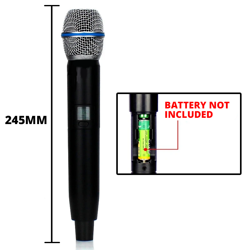 Designed for top-notch audio performance. It features dual-channel reception with 100 selectable channels in the 600-650MHz frequency range, ensuring stable signals. With easy-to-read LCD displays on both receiver and transmitter, you can monitor its status at a glance. Equipped with dual antennas for better signal reception, it offers connections for various devices. Powered by two rechargeable AA batteries, it lasts over 6 hours. Using advanced encryption, it prevents interference over distances up to 50 meters, capturing clear and natural sound with its high-quality microphone capsule. Perfect for events and performances where reliable audio matters most.